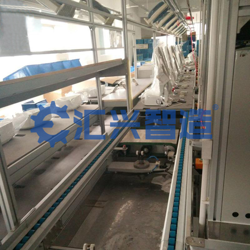智能馬桶蓋板組裝線包含頂升機、皮帶線、倍速鏈線、測試線等,有效的人和機器組合,最充分體現設備的靈活性,它將輸送系統、隨行夾具和在線專機、檢測設備有機的組合,以滿足馬桶蓋板的裝配要求。