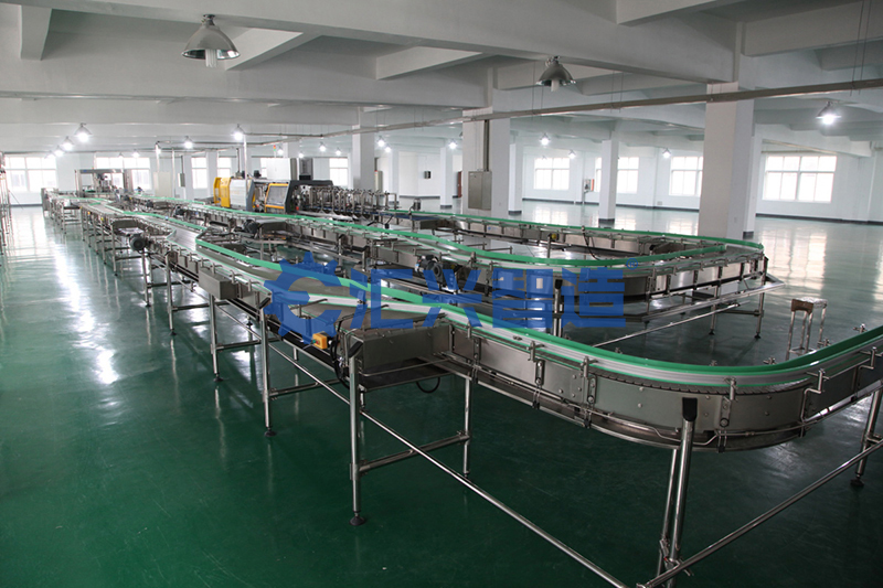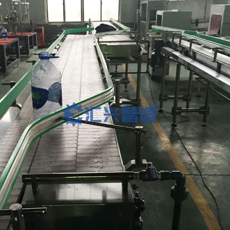 1、鏈板輸送線的輸送面平坦光滑,摩擦力小,物料在輸送線之間的過渡平穩,可輸送各類玻璃瓶、PET瓶、易拉罐等物料,也可輸送各類箱包。