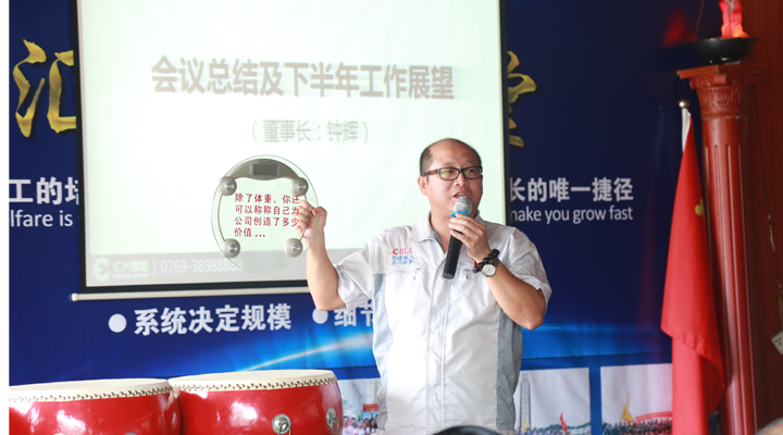 最后,由鐘輝董事長作會議總結及下半年的工作展望。回首上半年,經過全體匯興人的共同努力,匯興智造的業績趕超去年一年,并再次交出了亮眼的成績單,以“優等生”的身份成功晉級到新三板的創新層,這對公司未來的發展,特別是沖刺更高的資本巿場有著重要而深遠的意義。作為植根于大嶺山的本土民營企業,十七年來勤勤勉勉,絲毫不曾懈怠,也感恩大嶺山鎮這片熱土和好的營商環境,眾多領導干部、學者專家多次蒞臨匯興智造參觀調研和指導,給匯興智造的發展建言獻策,增光添彩。匯興智造作為大嶺山鎮市級“倍增計劃”試點企業,也是東莞市知識產權重點保護企業,新近又被獲評為“2016年度廣東省守合同重信用單位”。今年五月份,企業倍增辦順勢成立,匯興智造力爭在兩年內,狠抓業績,推動企業實現規模倍增、效益倍增、納稅倍增,一切以結果為導向,所有匯興人定以鐵一般的信仰,鐵一般的信念,鐵一般的紀律,鐵一般的擔當、朝著既定的目標奮勇前進。
