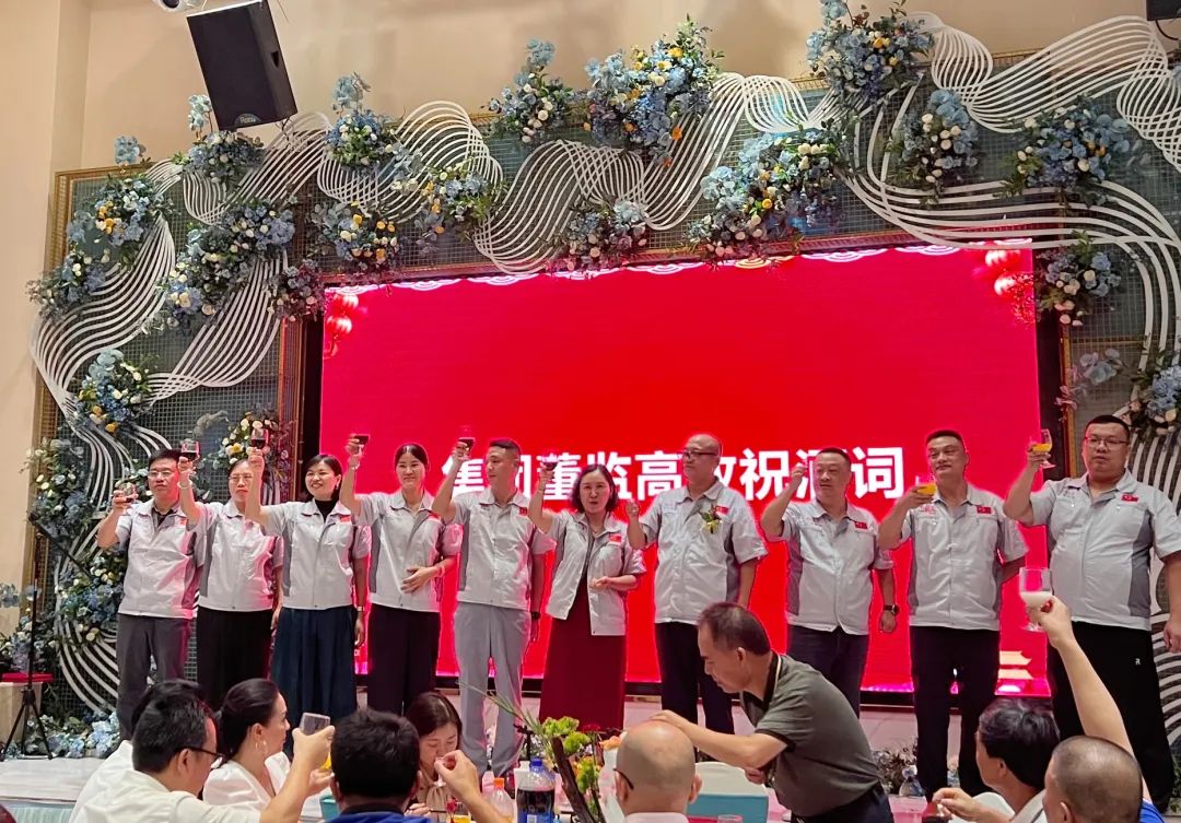 集團(tuán)董監(jiān)高團(tuán)隊(duì)上臺致祝酒詞。